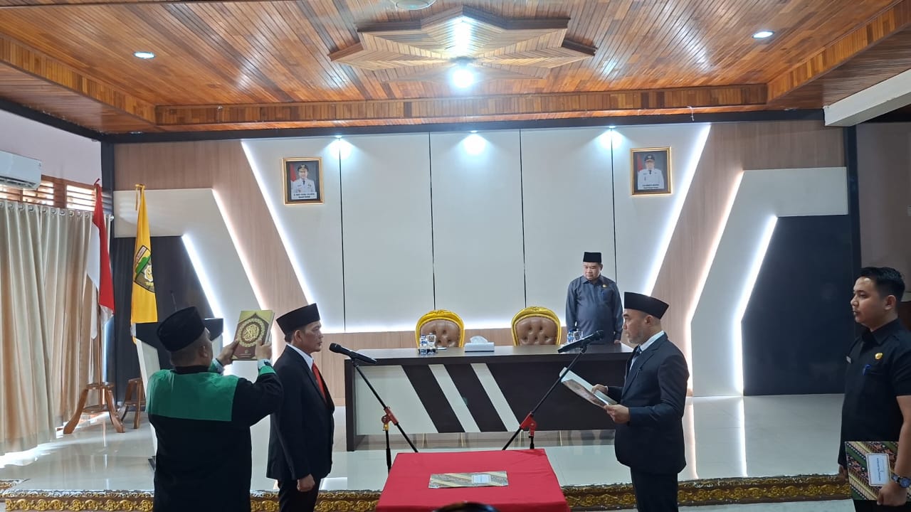 magnetnews.id ,Bungo, Bupati Bungo, H. Dedi Putra, S.E., Ak., secara resmi kembali melantik Donny Iskandar, S.E., M.Si. sebagai Penjabat Sekretaris Daerah (Pj Sekda) Kabupaten Bungo. Prosesi pelantikan berlangsung di Aula Kantor Bupati dengan khidmat, dihadiri oleh jajaran Forkopimda, kepala OPD, serta pejabat struktural di lingkungan Pemerintah Kabupaten Bungo ,Rabu 1 oktober 2025.